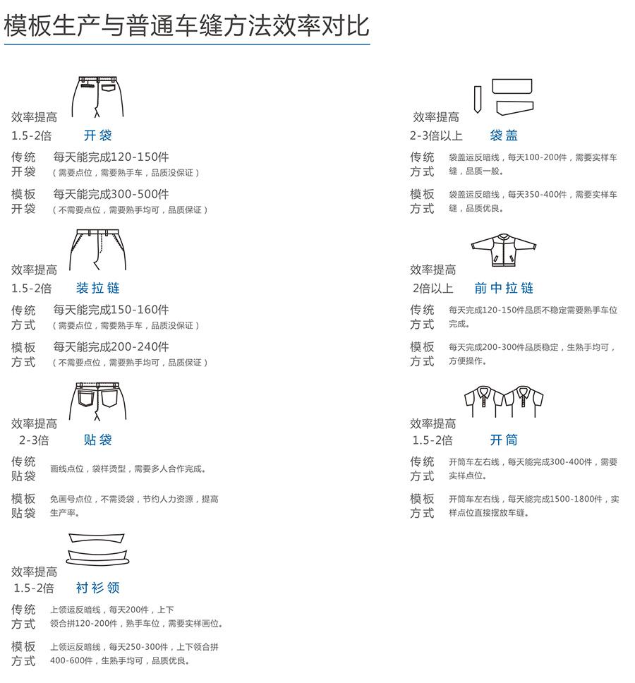 ● 模板工艺全面:经纬公司具有目前市面上所能用的所有服装模板制作工艺,精湛并且全面;